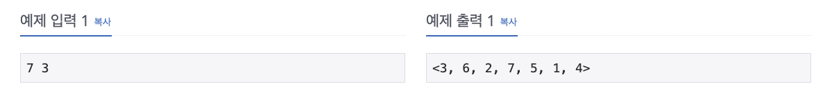 예제와 같이 요세푸스 순열을 출력한다.